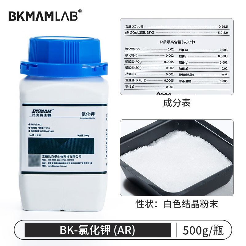 比克曼生物 氯化钾分析纯KCL缓释颗粒实验室用无机盐复合肥农用肥料国药沪试化学试剂 【国药试剂邮费6元,免费专票,量大价优】