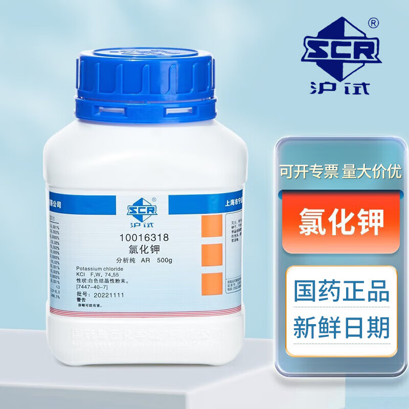> 比克曼生物 氯化钾分析纯KCL缓释颗粒实验室用无机盐复合肥农用肥料国药沪试化学试剂 【国药试剂邮费6元,免费专票,量大价优】