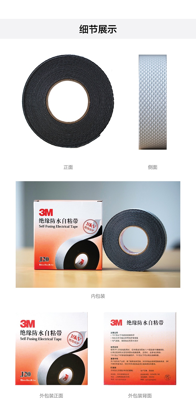> 3M J20 绝缘防水自粘带 耐高温防潮密封高压绝缘防水胶布 电工胶带 25mm*5m*0.7mm